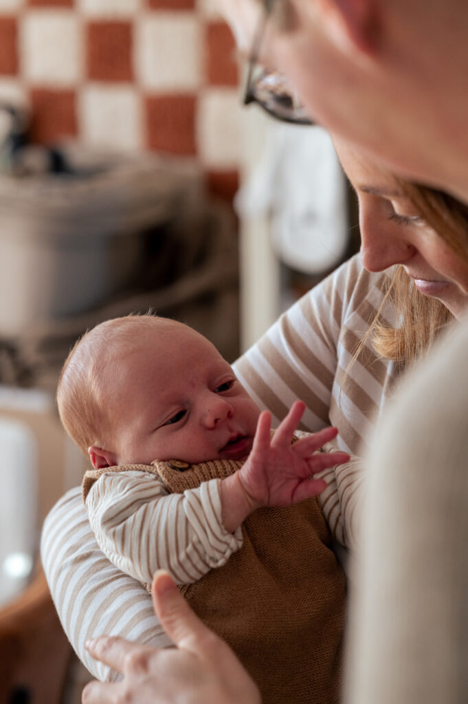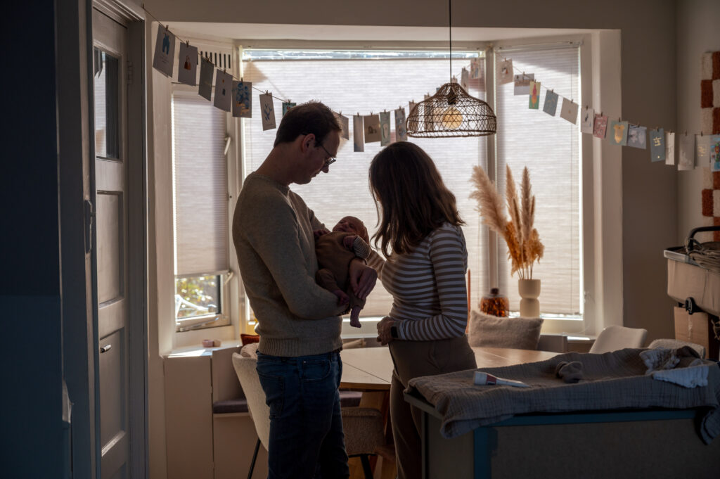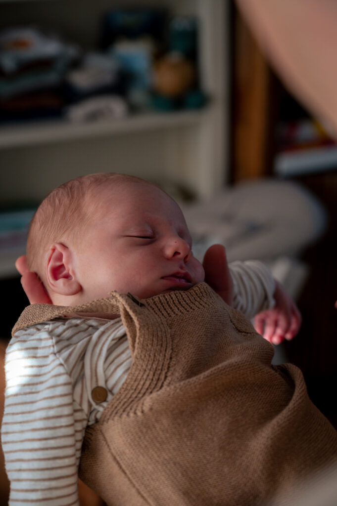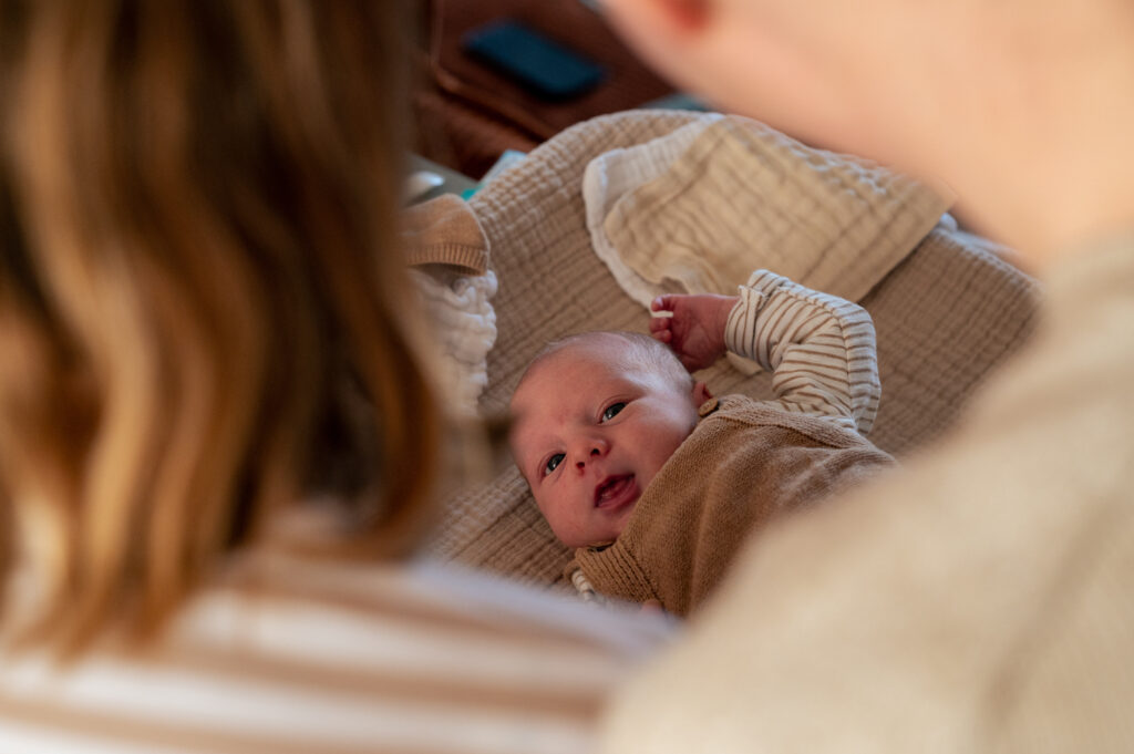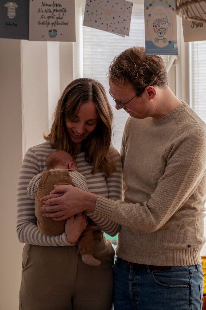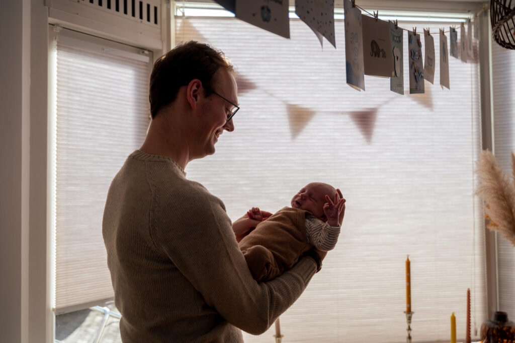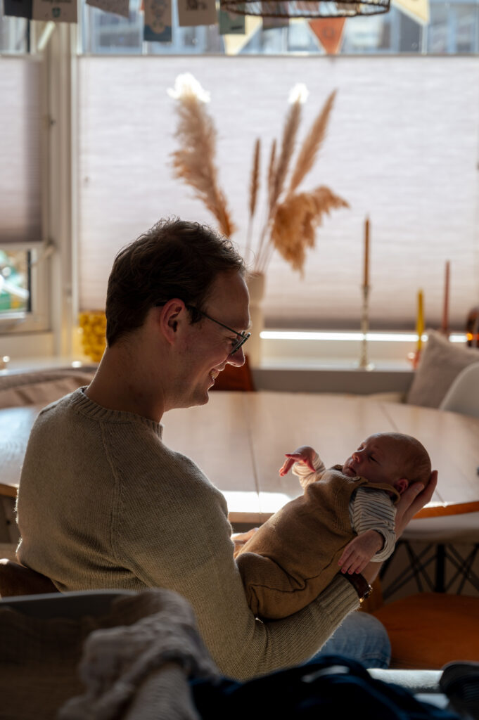 Ik heb een uurtje foto’s gemaakt bij Femke en Simon thuis. Ik vind het leuk om foto’s te maken van de “babyroutine”. Eigenlijk leg ik gewoon vast wat er in dat uurtje gebeurt: knuffelen, voeden, aankleden, etc. De felle winterzon scheen prachtig de woonkamer in, dus met de gordijnen dicht hadden we prachtig licht om foto’s te maken.